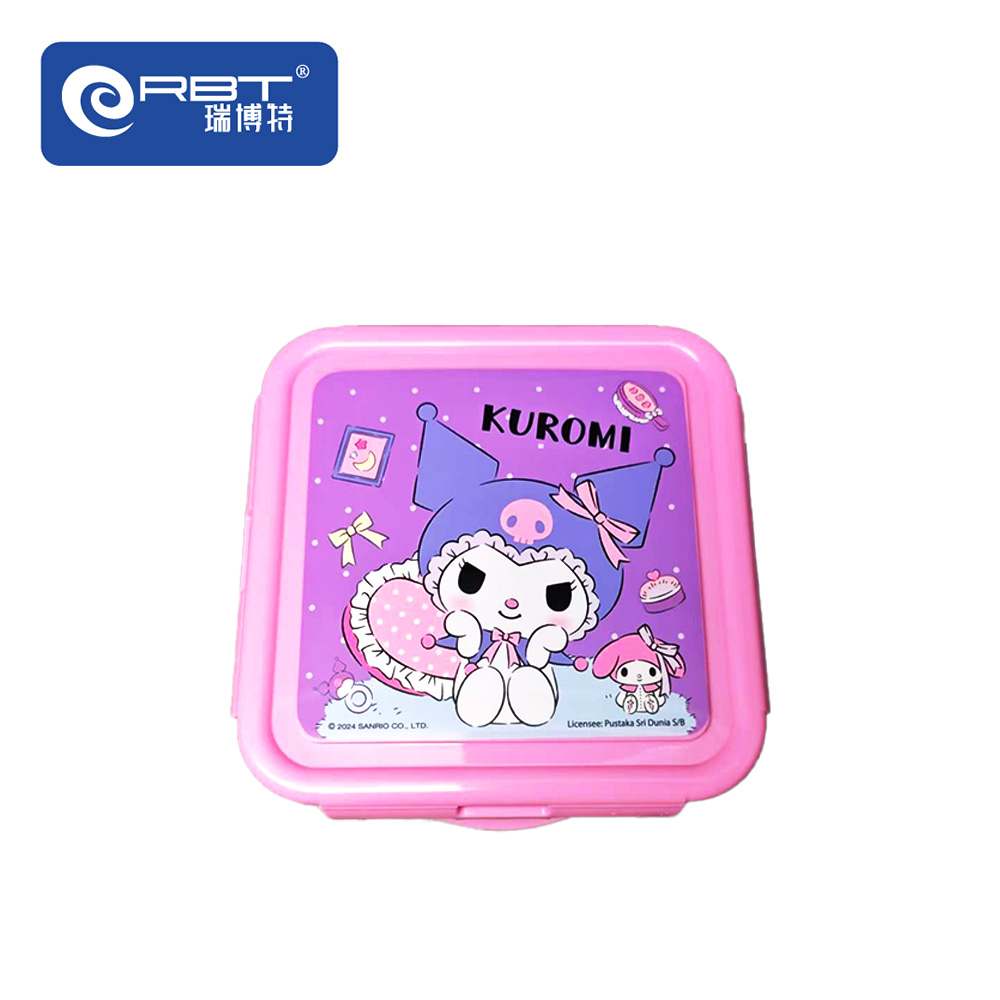 This children's plastic food tray and lunch box is a fantastic option for kids. Starting with its advantages, it is made of high - quality plastic that is food - grade, ensuring safety for children. Parents don't have to worry about harmful substances leaching into food, even when the tray holds warm meals or snacks. Also, it's quite durable. Kids can be a bit rough with their tableware, but this lunch box can withstand being dropped or knocked around without getting damaged easily. In terms of detailed features, the design is highly appealing. The lid features the popular cartoon character Kuromi, which is sure to attract children's attention and make mealtime more enjoyable. The pink and purple color scheme is bright and attractive to kids. The square shape is not only cute but also practical, making it easy for children to hold and use. The edges are smooth, preventing any potential scratches or cuts, which is an added safety measure for little hands. Regarding the application r…