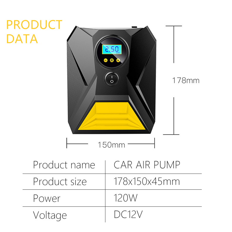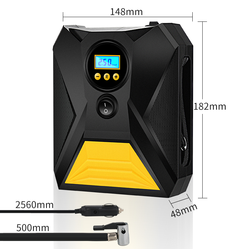 Tire Inflator Air Compressor, 12V DC Portable Air Pump with Digital Pressure Gauge and Emergency LED Light for Car Tires, Up to 150PSI for Bicycle, Balloons Product Overview * ✔【EASY TO USE&AUTO SHUT OFF】:Plug portable air compressor power cable into the car's 12V power outlet, then press theinflation nozzle into the tire valve,set the pressure value required by the tire and press the switch to start inflating. Theair compressor pump will automatically shut off when reaching desired tire pressure.* ✔【150 PSI MAX WORKING PRESSURE】:With maximum pressure 150 PSI 0 to 35 psi under 4.5 minutes. It's much faster and more effective than traditional pumps, and comes with an accurate tire pressure gauge.* ✔【DIGITAL DISPLAY & LED LIGHTING】:Car tire inflator is equipped with a large high-precision and high-brightness display to help you check the tire pressure and preset the tire pressure values. The digital tire inflator is equipped with bright,long-la…