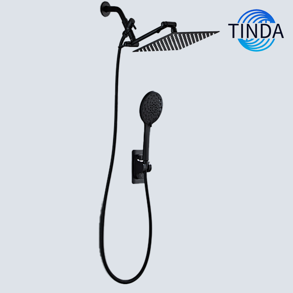 This black shower set is a striking blend of modern style and practical functionality, making it a standout addition to any bathroom. The set features a square overhead shower and a handheld showerhead, both finished in a sleek matte black that exudes contemporary elegance. The square overhead shower, with its numerous precisely arranged nozzles, delivers a wide and gentle rainfall - like water flow. When in use, it creates a luxurious and immersive shower experience, allowing you to unwind and wash away the stresses of the day. Complementing the overhead shower is the handheld showerhead, connected by a flexible black hose. This handheld unit offers great convenience, enabling targeted water flow. It's perfect for rinsing off soap, cleaning hard - to - reach areas of the shower, or even giving pets a bath with ease. Crafted from high - quality materials, the set is not only visually appealing but also durable. The black finish is resistant to corrosion and tarnishing, ensuring that…