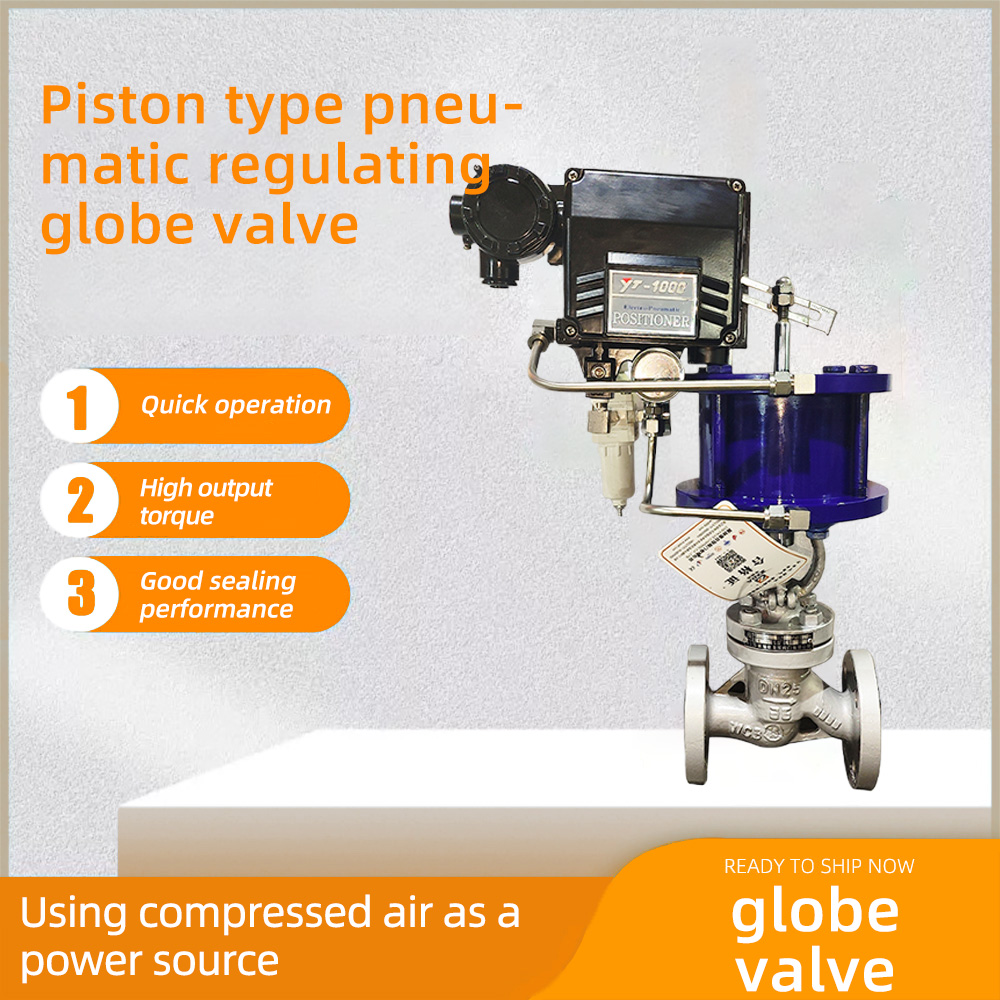 The Piston Type Pneumatic Regulating Globe Valve presents a robust and intricate appearance. The stainless - steel valve body has a sleek, polished finish, exuding durability and strength. The upper section, dominated by a blue - hued piston - actuation chamber, contrasts sharply with the metallic base, adding a touch of distinctiveness. Attached to it is a black - colored positioner and other control components, which are neatly arranged, indicating a well - engineered design. The overall structure is compact yet powerful, with clearly defined parts that suggest ease of integration into various pipeline systems. Advantages Quick Operation: Using compressed air as a power source, this valve enables rapid opening and closing actions. In industrial processes where split - second adjustments to fluid flow are crucial, its quick - response feature ensures seamless operation and enhanced process efficiency. High Output Torque: The piston - type design generates significant torque, allowin…