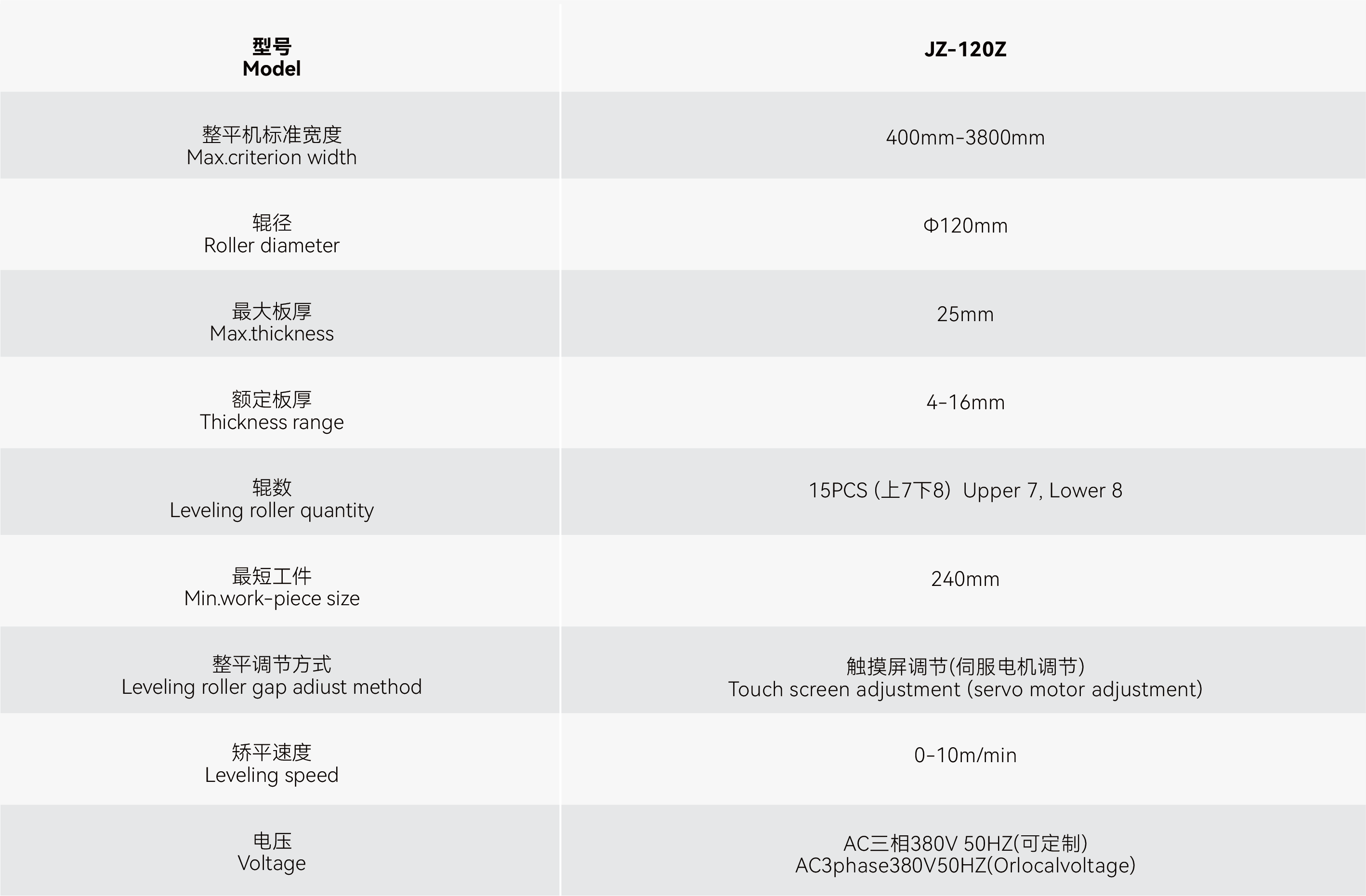 JZ-100Z(T:3.0-12.0mm) Specialized in Metal Plate Leveling Machines with 20+ Years of Technical Expertise Developed through dedicated R&D, JIUZH's leveling machine applies the "Bauschinger Effect" ,sheet metal was repeatedly twisted to make metal fiber gradually consistent, eliminate internal stress, restore and improve the flatness,the precision can reach micron level.The stagger arranged support rollers ensure leveling rollers bearing heavy pressure in balance without bending deformation, keeping the whole equipment have enough rigidity. Upper and lower support roller column & upper and lower leveling roller group making up four-high or six-high layers structure, ensuring stable, efficient and high-quality leveling performance. Super precision leveling accuracy: Utilizing high-precision sensors and micro-controlled hydraulic systems, the flatness error of medium-thick plates (3.0-12.0mm) after leveling is ≤ 0.1mm/m, meeting the strict requirements for plate accuracy in p…
