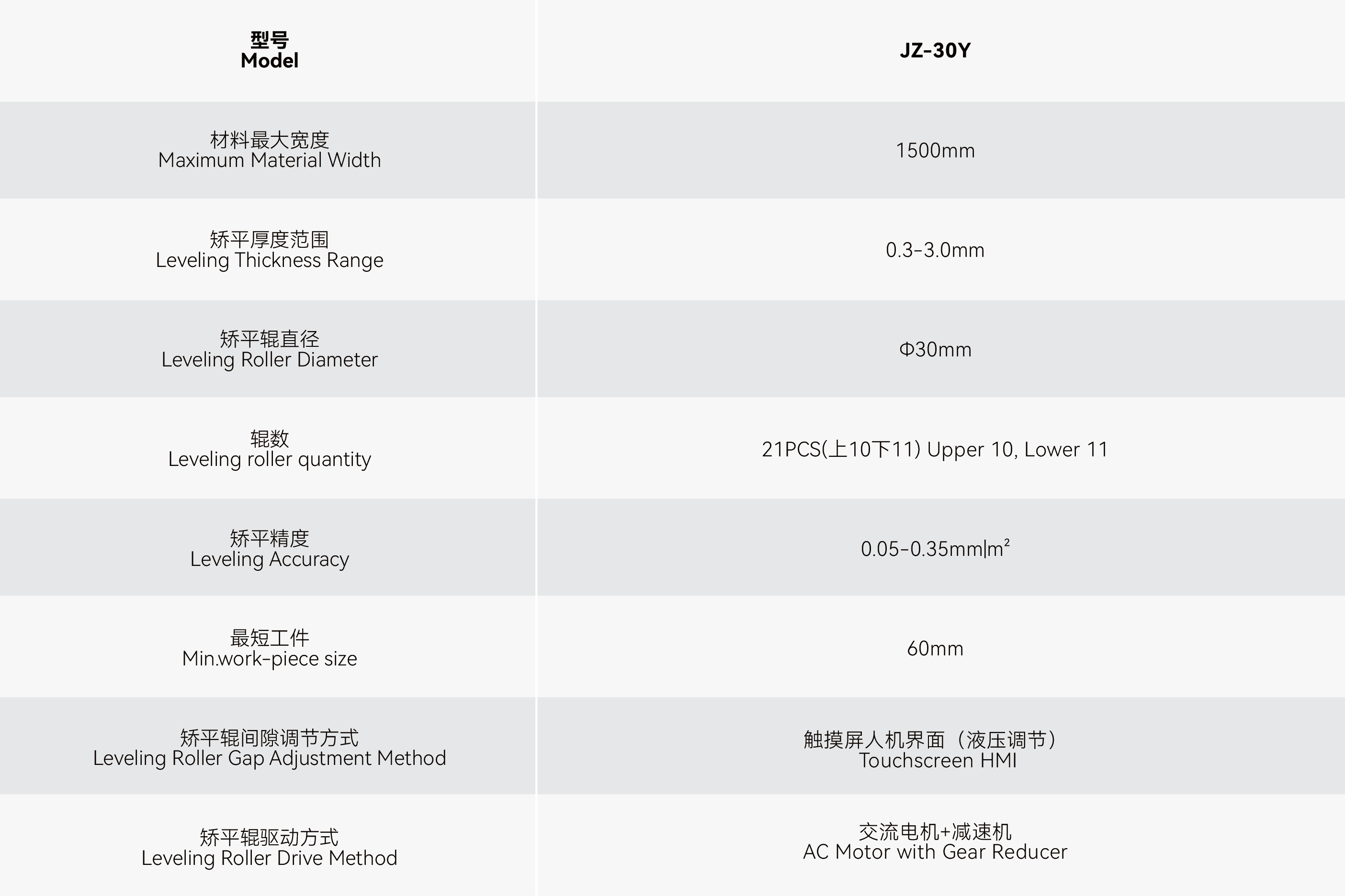 JZ-30Y(T:0.3-3.0mm) Specialized in Metal Plate Leveling Machines with 20+ Years of Technical Expertise Developed through dedicated R&D, JIUZH's leveling machine applies the "Bauschinger Effect" ,sheet metal was repeatedly twisted to make metal fiber gradually consistent, eliminate internal stress, restore and improve the flatness,the precision can reach micron level.The stagger arranged support rollers ensure leveling rollers bearing heavy pressure in balance without bending deformation, keeping the whole equipment have enough rigidity. Upper and lower support roller column & upper and lower leveling roller group making up four-high or six-high layers structure, ensuring stable, efficient and high-quality leveling performance. No deformation under heavy load: The high-strength frame (mostly made of high-strength cast iron / welded steel structure) can withstand high pressure. When flattening thick steel plates, the frame does not deform, ensuring processing stability; Mor…