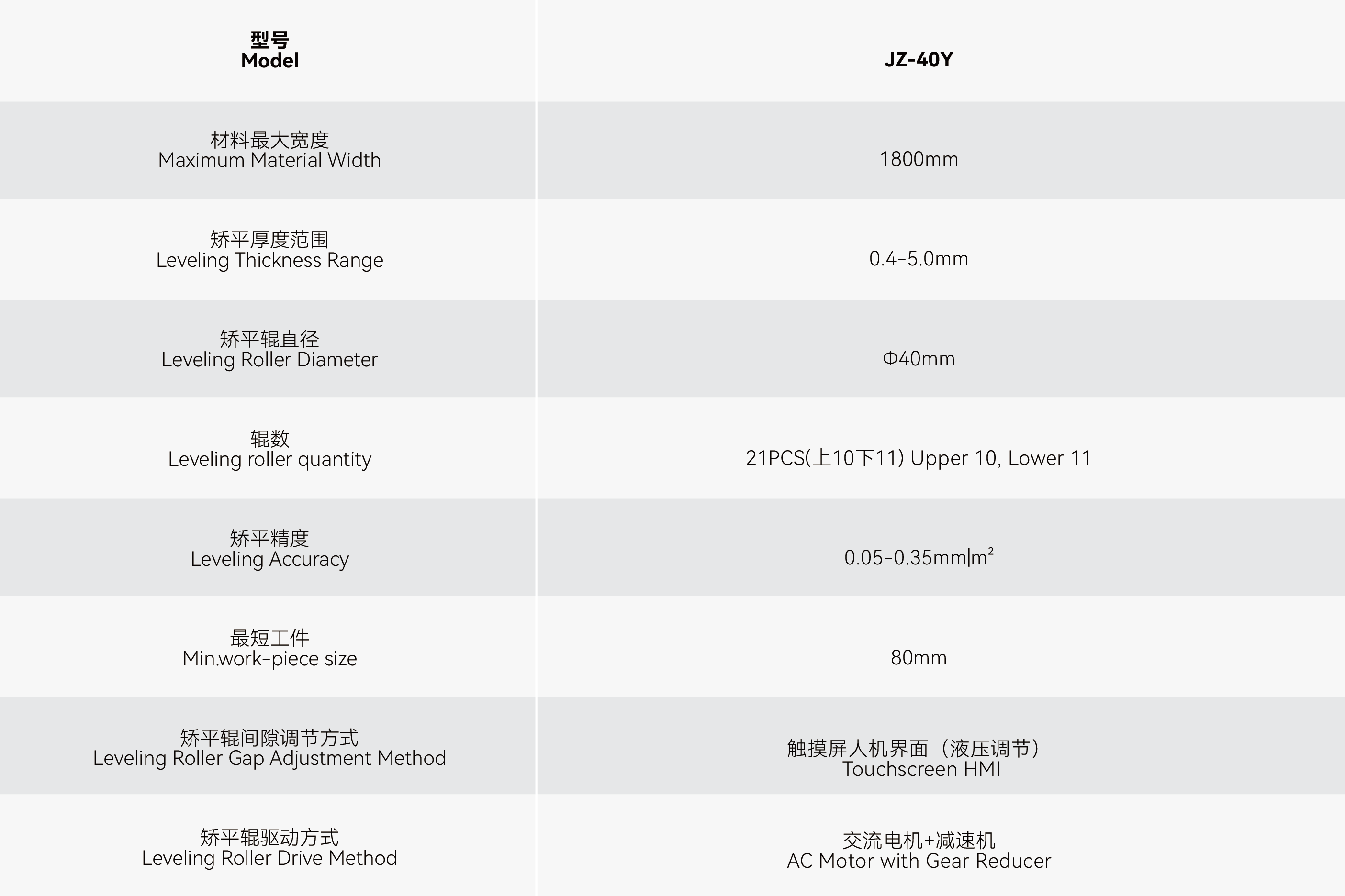 JZ-40Y(T:0.4-5.0mm) JIUZH - Precision Metal Plate Leveling Solutions with 20+ Years of Engineering Excellence Through continuous R&D innovation, JIUZH's leveling technology leverages the "Bauschinger Effect", where metal sheets undergo controlled twisting to realign internal stress, releasing The Hydraulic Steel Plate Leveling Machine with Conveyor System developed by Jiuzhong is an advanced leveling solution that combines hydraulic precision leveling with automated conveying technology. This innovative design allows the machine to effectively correct waviness, bending, and residual stress on steel plates, ensuring superior flatness and surface quality. Unlike conventional machines, this model integrates an intelligent conveyor system that enables continuous feeding and automatic discharging of plates, greatly improving productivity. With its high-performance hydraulic system, the machine maintains exceptional stability when processing plates of different thicknesses. Whether u…