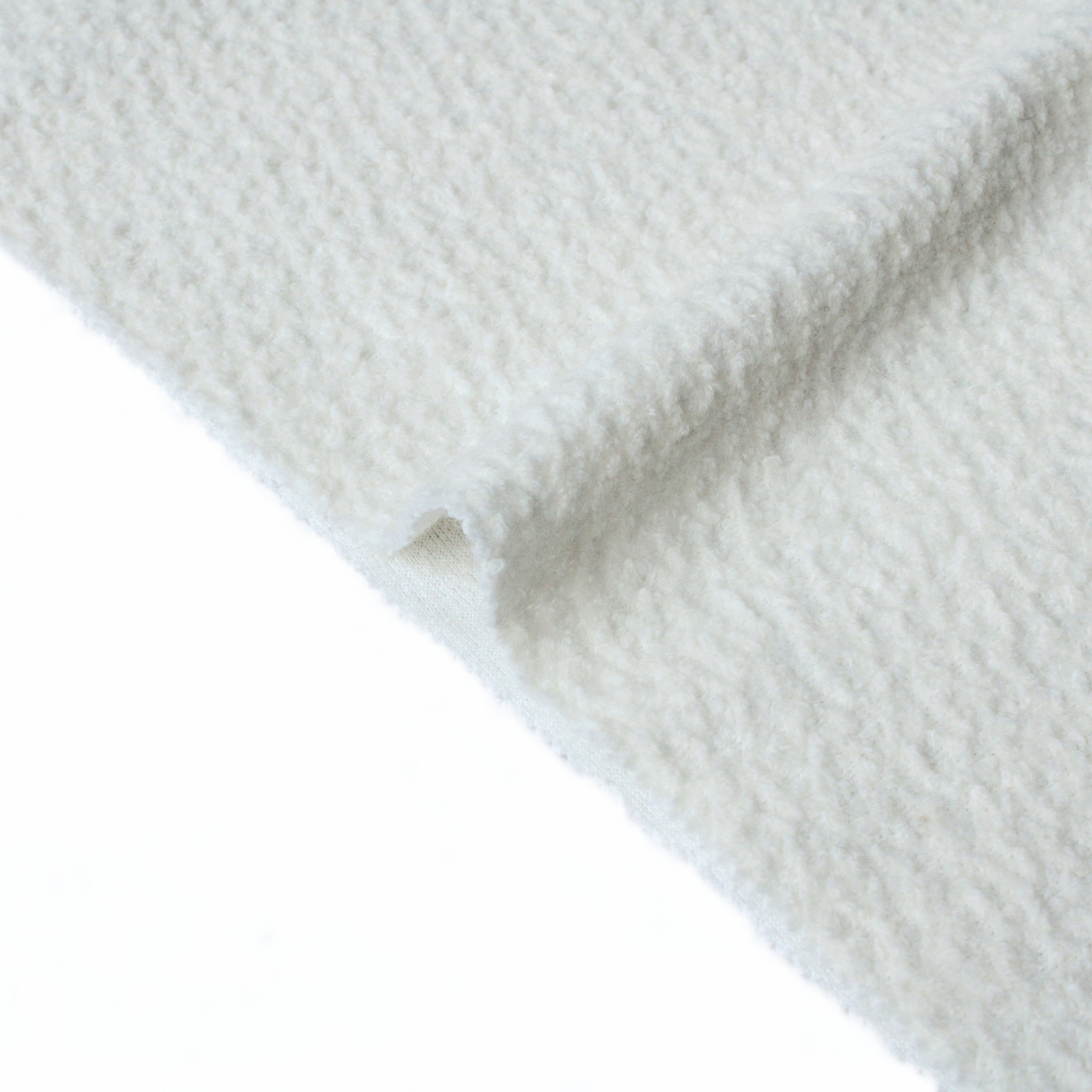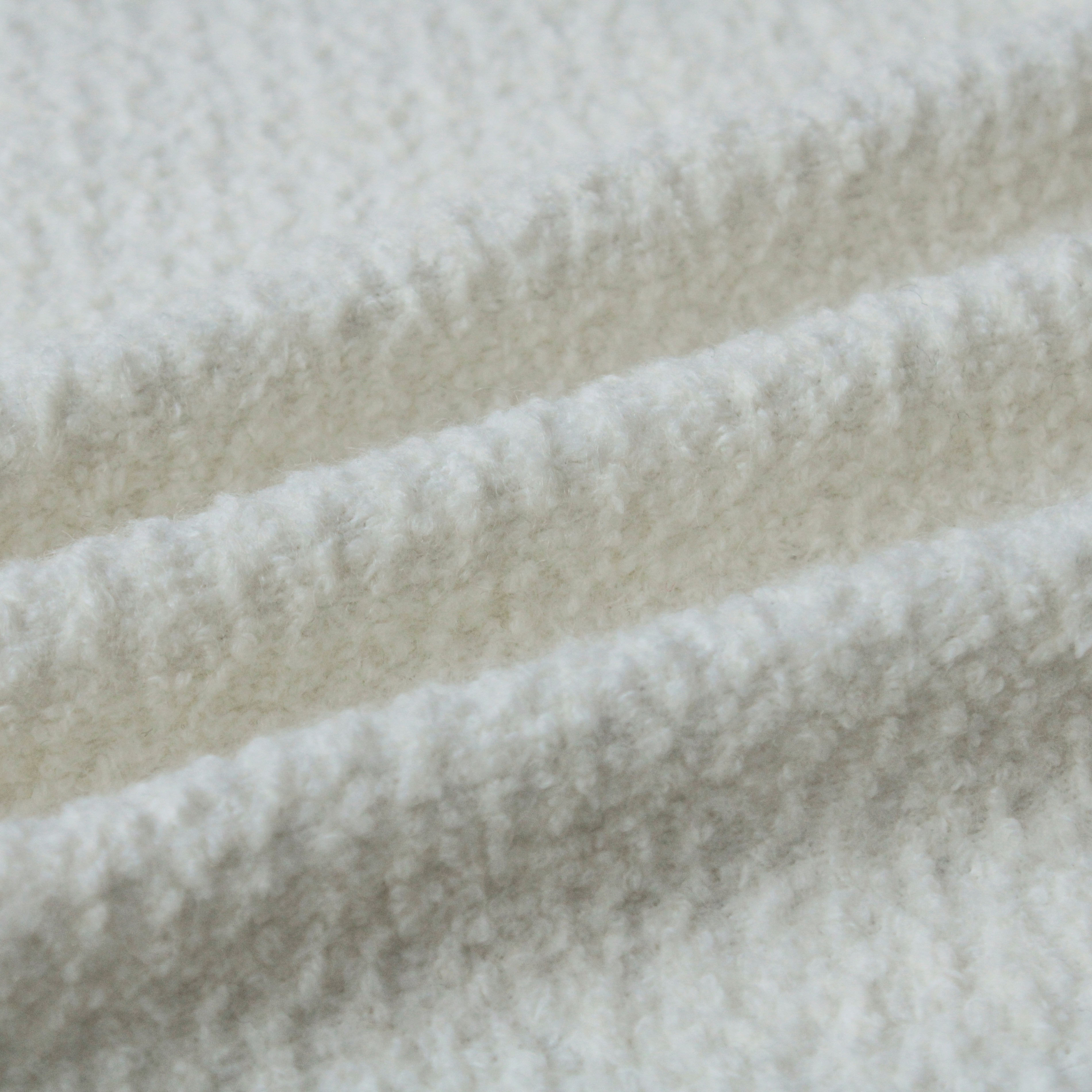 【Snow white Whispers 】——When pure white meets the elegant Every inch of knitting holds the soft When fresh natural wool meets modern high-tech fine polyester, a perfect feeling of softness and toughness quietly comes into being. It embodies the natural warmth and delicacy of wool, while embracing the sturdiness and durability of polyester, firmly combining "comfort" and "easy care" in one. The high weight of this wool knit fabric gives it sufficient structural support, allowing it to create a neat. It is a fashion ideal for making short knit jackets, mid-length knit coats. The pure white base exudes a clean and sleek vibe; when paired with same-tone plush collars or metal buttons, it effortlessly achieves a soft Korean style or a vintage American textile cloth. Suitable for daily outerwear, it can withstand low temperatures ranging from 5℃ to 15℃. As a specialized fabric manufacturer, we expertly produce high-quality materials including premium wool knit fabric, durable ho…