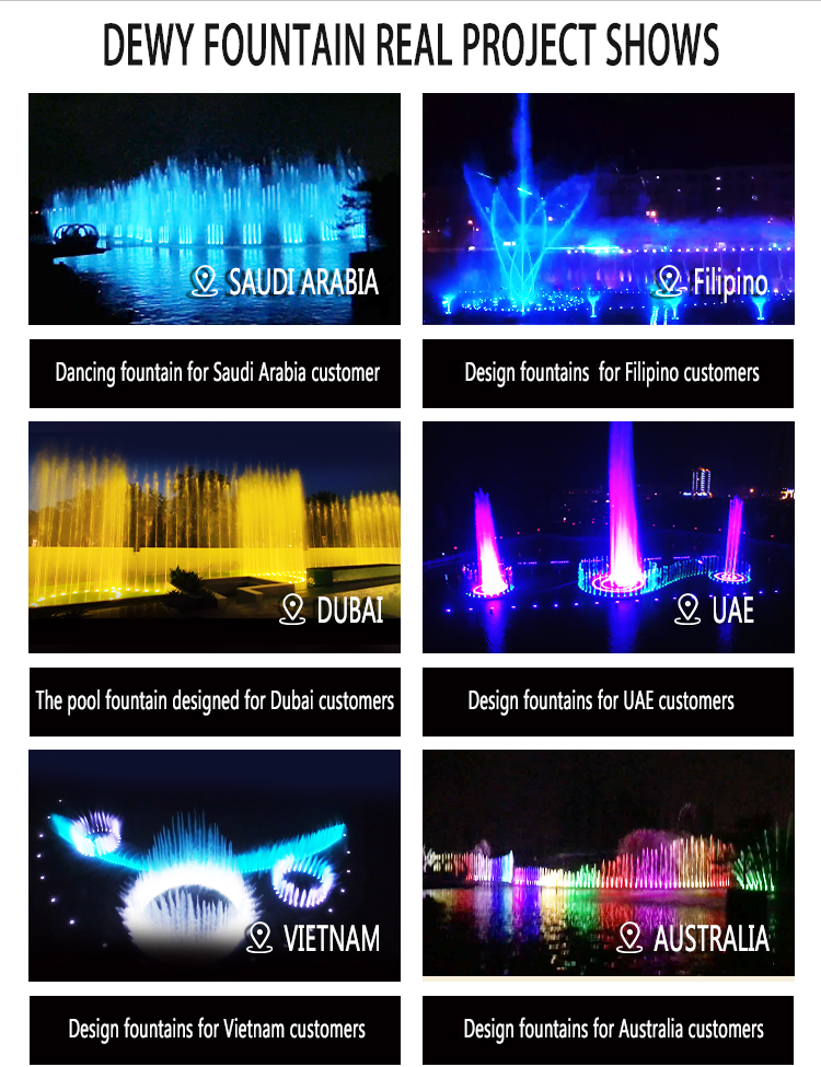 Product Paramenters Our Digital Water Curtains use cutting-edge technology to create a dynamic water show that can be customized to fit any space or theme. Whether you're looking to add a unique touch to a public park, shopping center, or event venue, our water curtains will captivate audiences of all ages. Elevate your outdoor space with our customizable water show featuring Digital Water Curtains. This innovative outdoor water installation will mesmerize your guests and create a truly unforgettable experience. Key Features: Customizable water show with Digital Water Curtains Outdoor installation suitable for any outdoor space Enhance the ambiance of your event or venue Easy to install and maintain High-quality materials for durability Company Introduction Dewy Fountain factory is professional musical water fountain design, production, installation factory. We have professional teams can be installation for you. Factory price, fast service and good q…